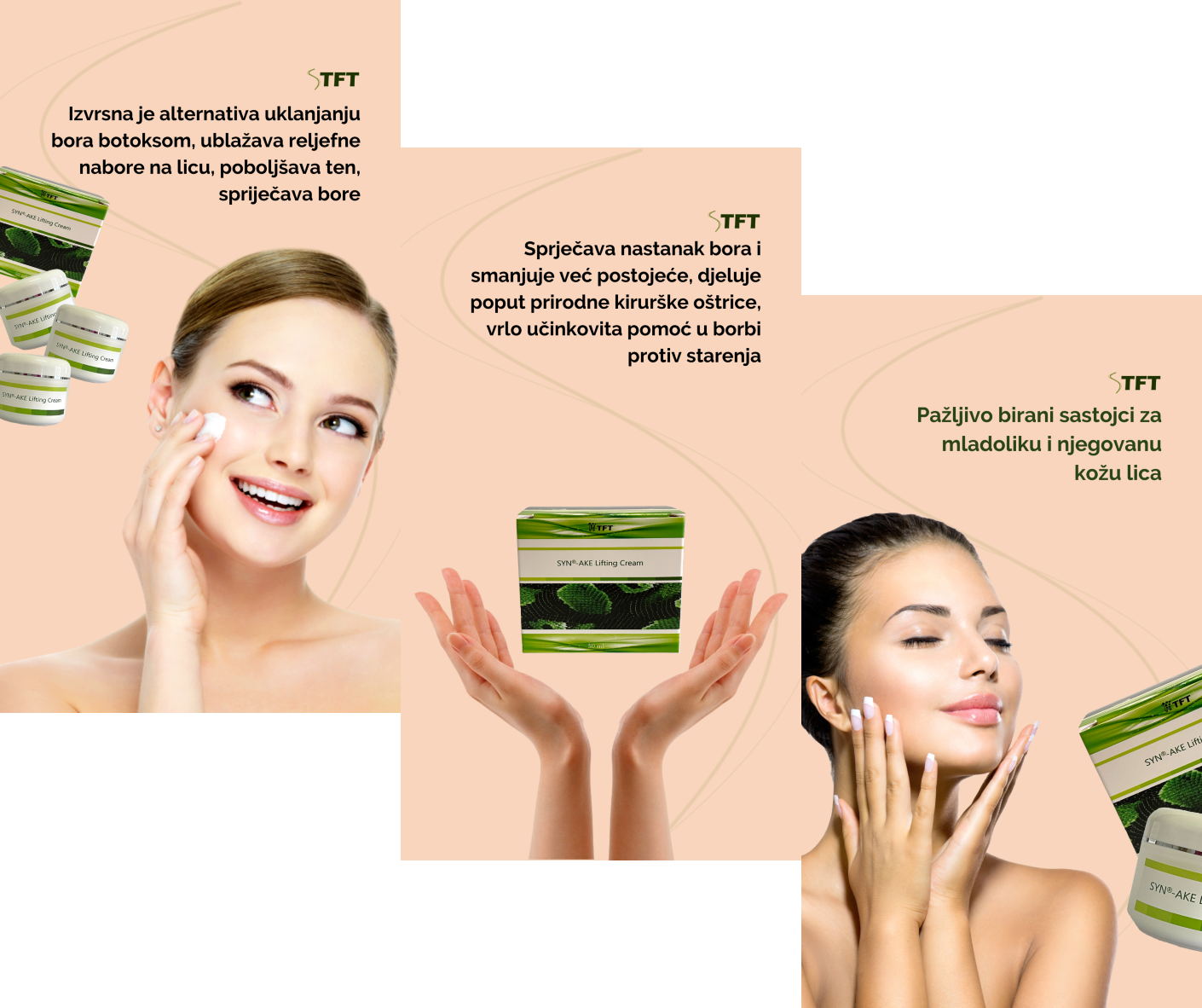 TFT je domaća internet trgovina za prodaju nespecijaliziranih proizvoda na malo. Naglasak poslovanja stavljamo na Syn-ake lifting kremu, napravljenu prema provjerenoj recepturi.